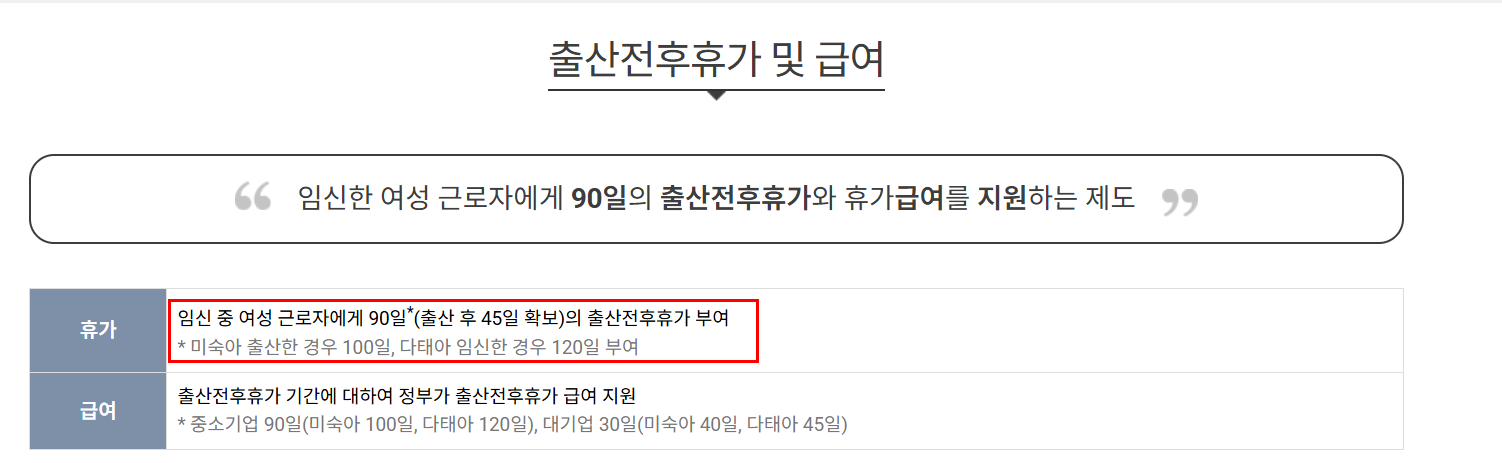 • 기본 출산휴가: 90일 (다태아 120일)
